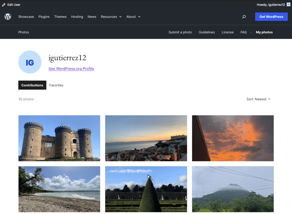 - Perfil público en wordpress.org/photos con las 30 fotos publicadas.